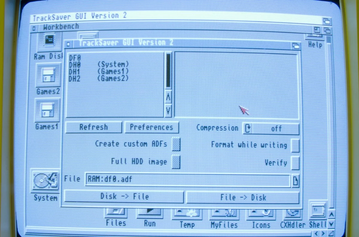 I can now transfer all the ADF files (Amiga Disk File) from my Mac over to my Amiga (via the CF card) and then write them back on to a new 3.5” floppy using TrackSaver.